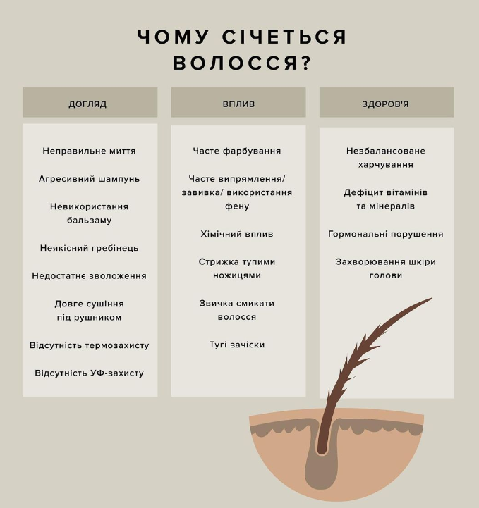 Січення волосся – це результат різних зовнішніх і внутрішніх чинників, які впливають на структуру і здоров’я волосся. Розглянемо їх детальніше: