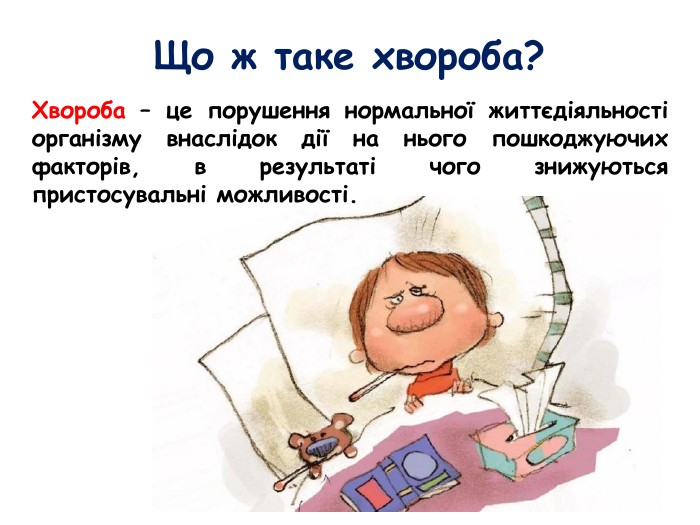 Хвороба – це стан організму, при якому порушується його нормальне функціонування. У сучасному суспільстві питання про те, що таке хвороба, має велике значення для медицини, науки та широкого загалу. Захворювання можуть мати різноманітні прояви та причини, що визначаються комплексом біологічних, екологічних і соціальних факторів.