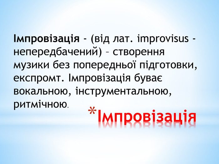 - Імпровізація може створювати унікальні мелодії та ритми, що дозволяє музикантам висловлювати себе більш вільно.