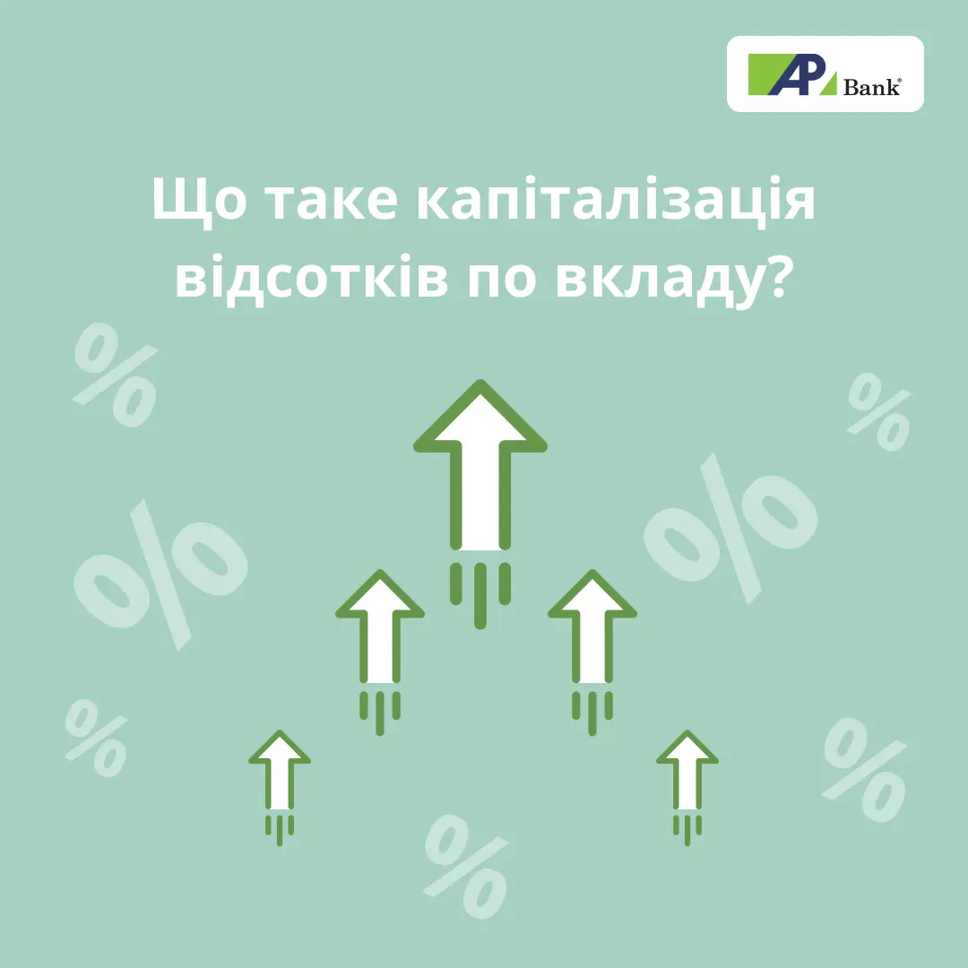 Процес капіталізації відсотків на депозитах також відомий під назвою “складний процент”. Він обчислюється за формулою: