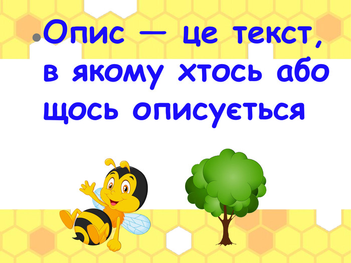 • Деталізація. Опис приділяє увагу кожній деталі, щоб читач міг уявити предмет чи явище як можна точніше.