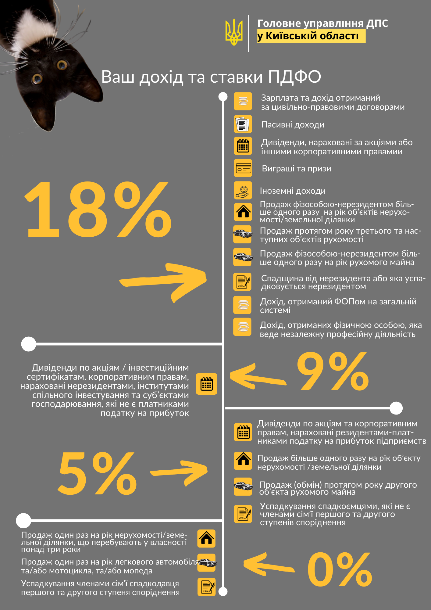 - Об’єкт оподаткування: будь-які доходи фізичних осіб, включаючи заробітну плату, дивіденди, прибуток від продажу майна тощо.