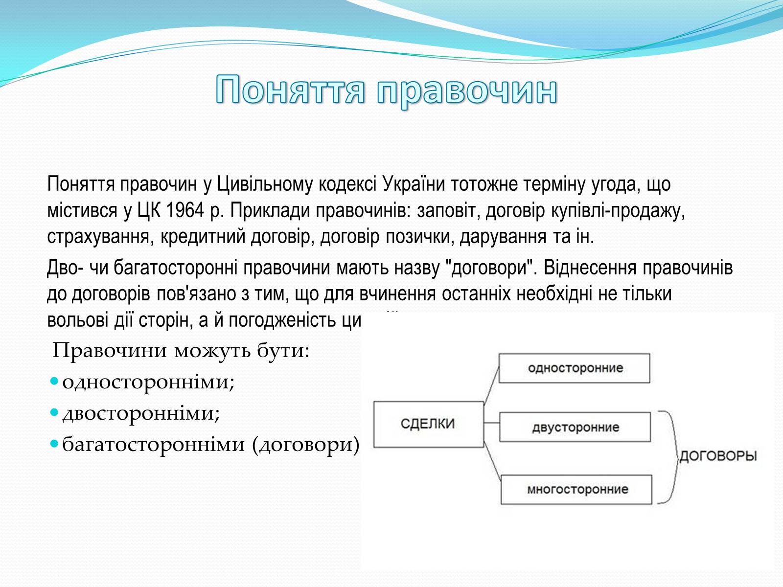 • Двосторонні: для укладення цих правочинів необхідна взаємна згода двох сторін, як у випадку з договорами купівлі-продажу.