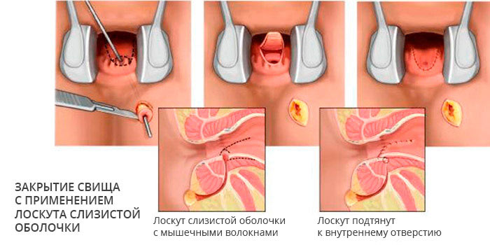 - Пластичне закриття: призначено для закриття свища та відновлення нормальної анатомії тканин.