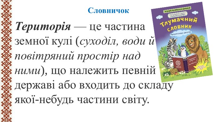 • Географічні кордони: Визначають, де починається і закінчується територія.