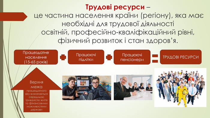 • Населення — потенційні працівники, які перебувають у працездатному віці.