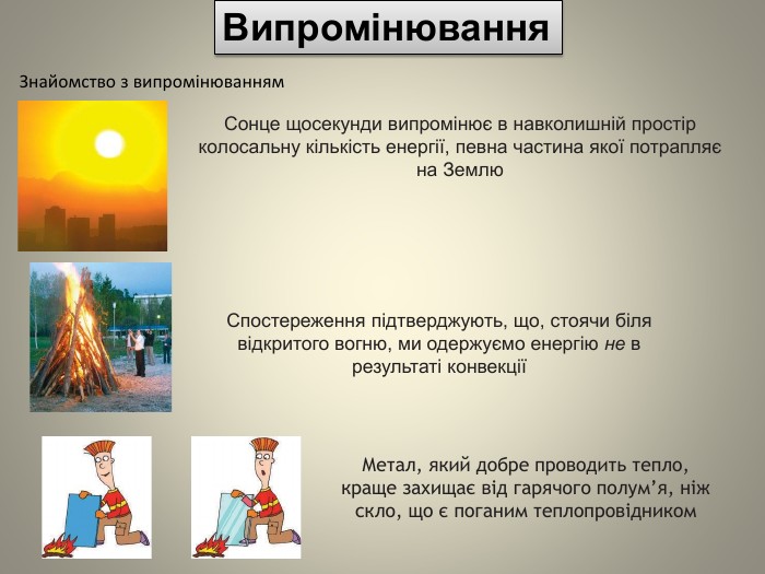 - Теплове випромінювання: Випроміни енергії у вигляді інфрачервоного світла, яке генерується тепловим рухом атомів і молекул.