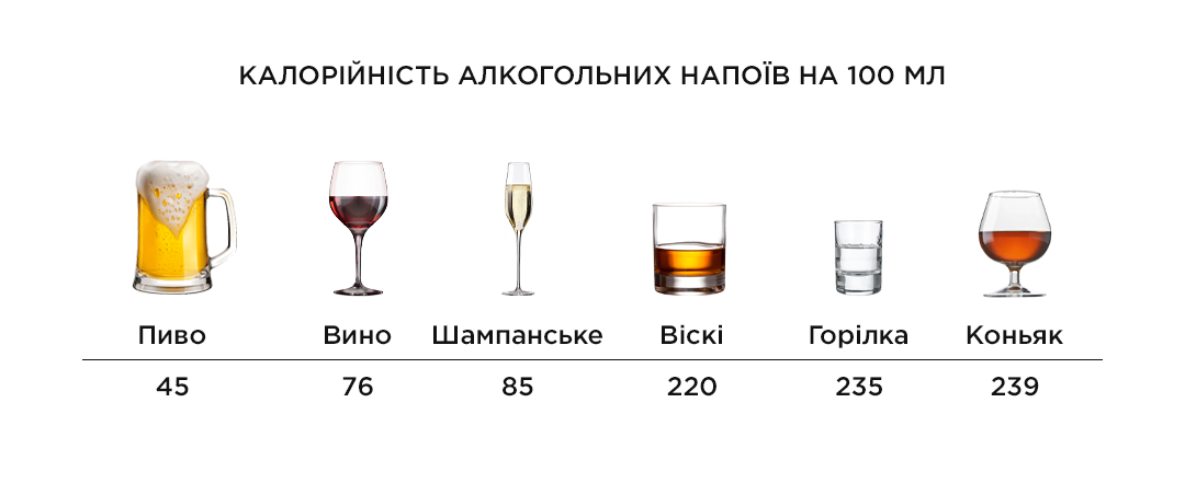 Таблиця: Зміст цукру в різних видах алкоголю
