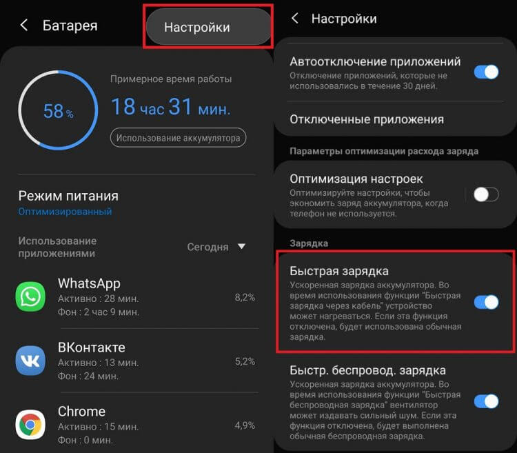 - Знайдіть опцію Швидка зарядка або Адаптивна зарядка.