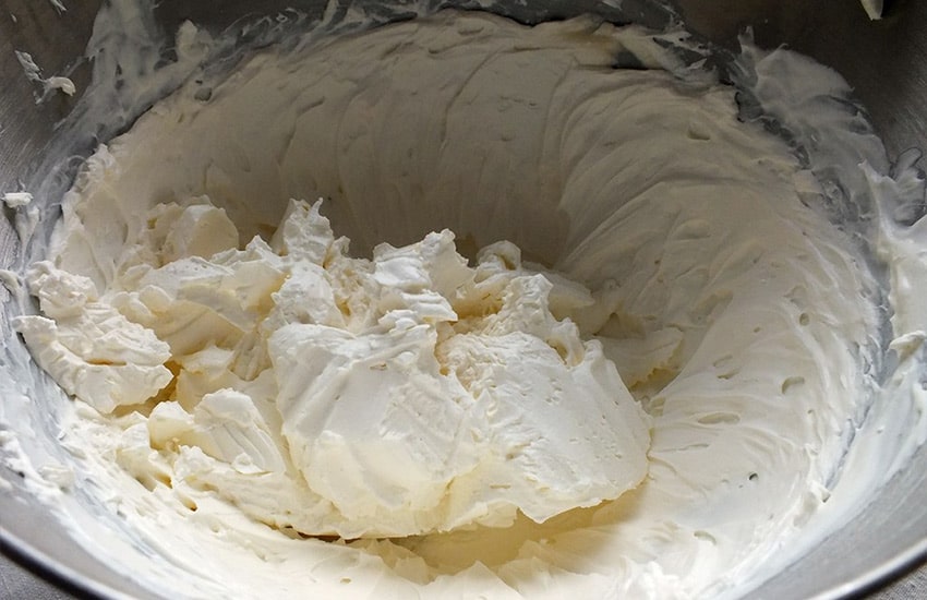 - Як тільки вершки перетворяться на збиті вершки, продовжуйте збивати. Ви помітите, як форма змінюється, і вершки починають розшаровуватись, формуючи грудочки масла.