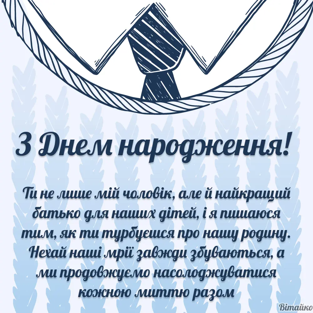 - Закінчення: “Сьогодні я просто хочу побажати тобі бути завжди таким, яким ти є. Ти – моя підтримка, моя любов і моя найліпша доля. З днем народження, мій єдиний і неповторний.”
