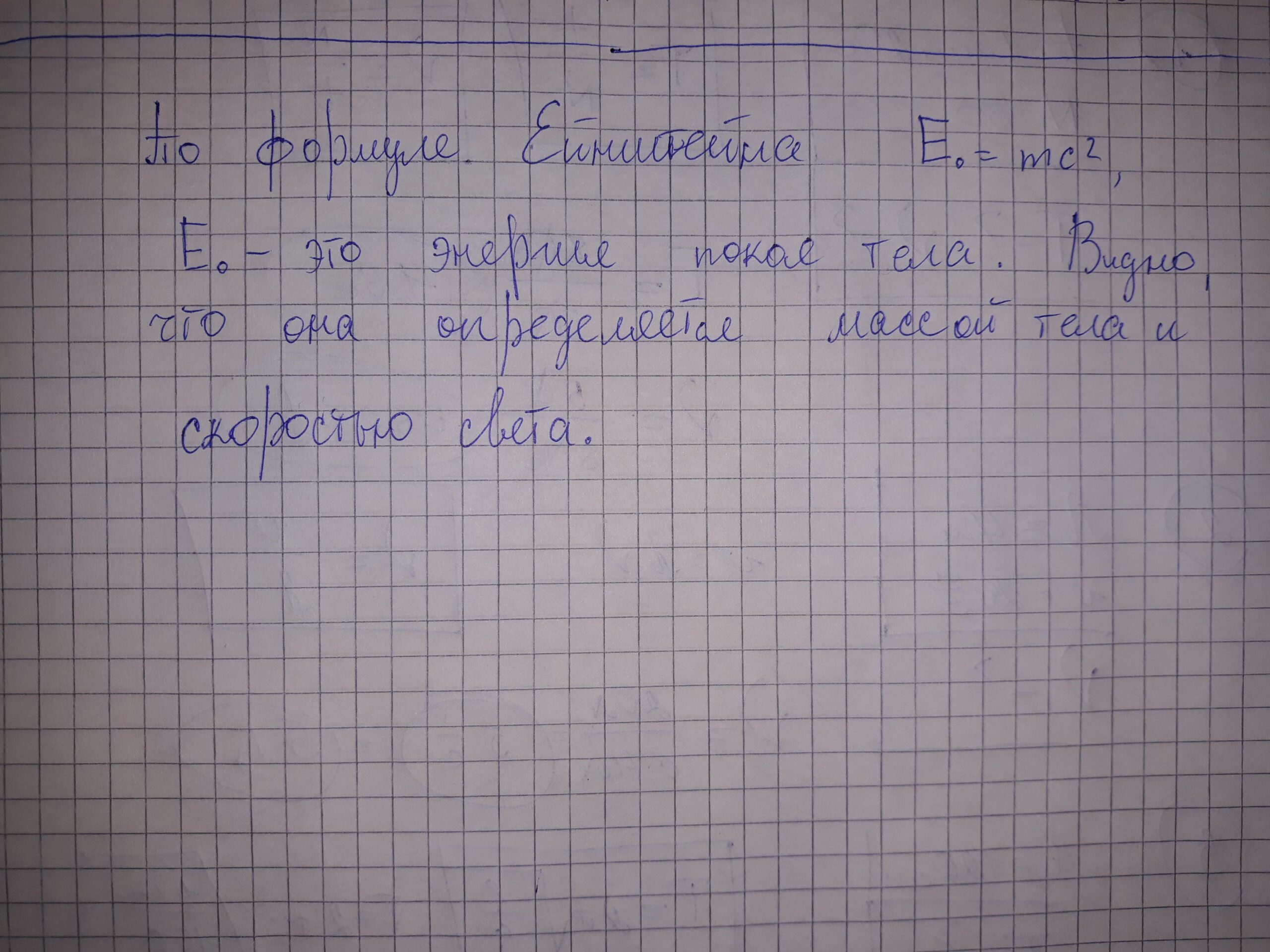 де E — енергія, m — маса тіла, а c — швидкість світла у вакуумі (приблизно 3 x 108 м/с).