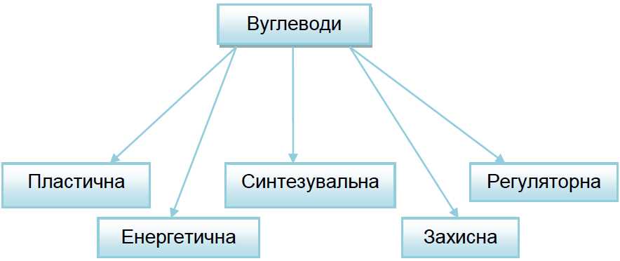 Вуглеводи також виконують важливу регуляторну функцію. Глюкоза, наприклад, підтримує осмотичний тиск у рідинах організму, а також впливає на роботу ферментативних систем, що беруть участь у різних метаболічних процесах.