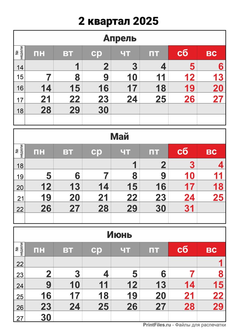 Другий квартал 2025 року, який включає місяці квітень, травень та червень, є важливим і динамічним періодом як для природного циклу, так і для багатьох сфер людської діяльності. Плануючи свої активності на цей період, варто враховувати погодні умови, святкові дні та можливості для відпочинку, щоб максимально ефективно використовувати цей час.