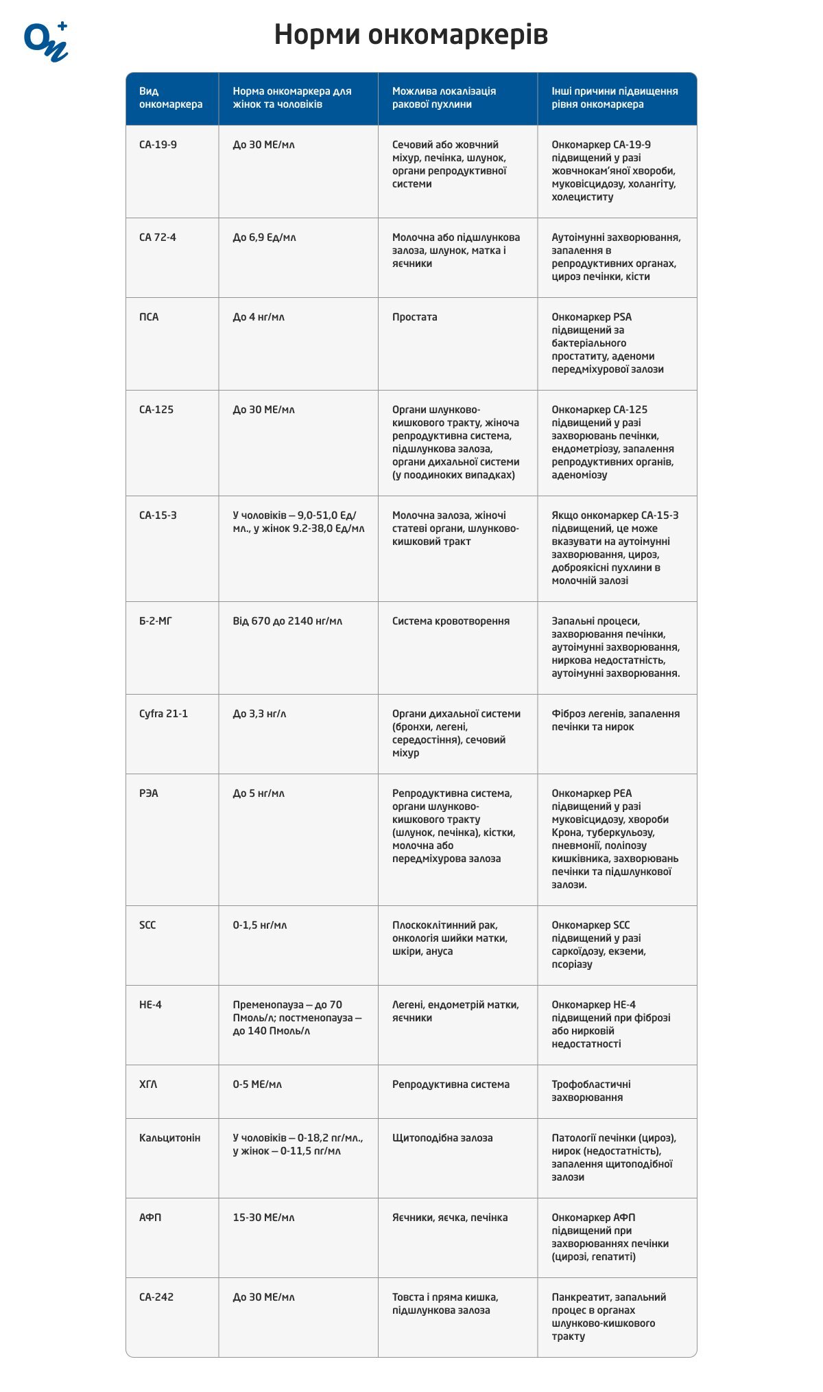 Аналіз на онкомаркери дозволяє не лише діагностувати наявність пухлини, але й визначити стадію захворювання, контролювати ефективність лікування та виявити можливі рецидиви. Однак варто пам’ятати, що підвищення рівня онкомаркерів не завжди свідчить про наявність онкологічного захворювання, оскільки їх рівень може змінюватися з інших причин, таких як запальні процеси або доброякісні утворення.