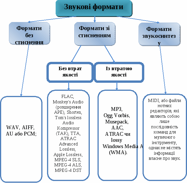 - Сумісність: Формати, як MP3, мають широку підтримку на різних пристроях.