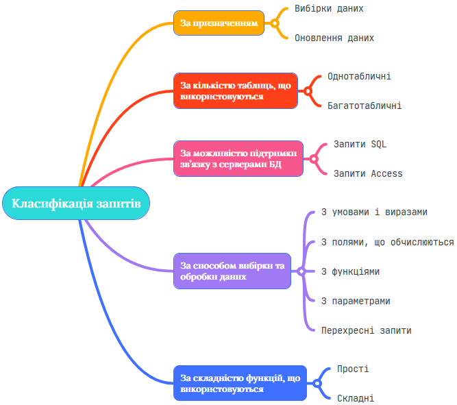 Запити поділяються на кілька основних типів, кожен з яких має свої специфічні можливості та застосування.